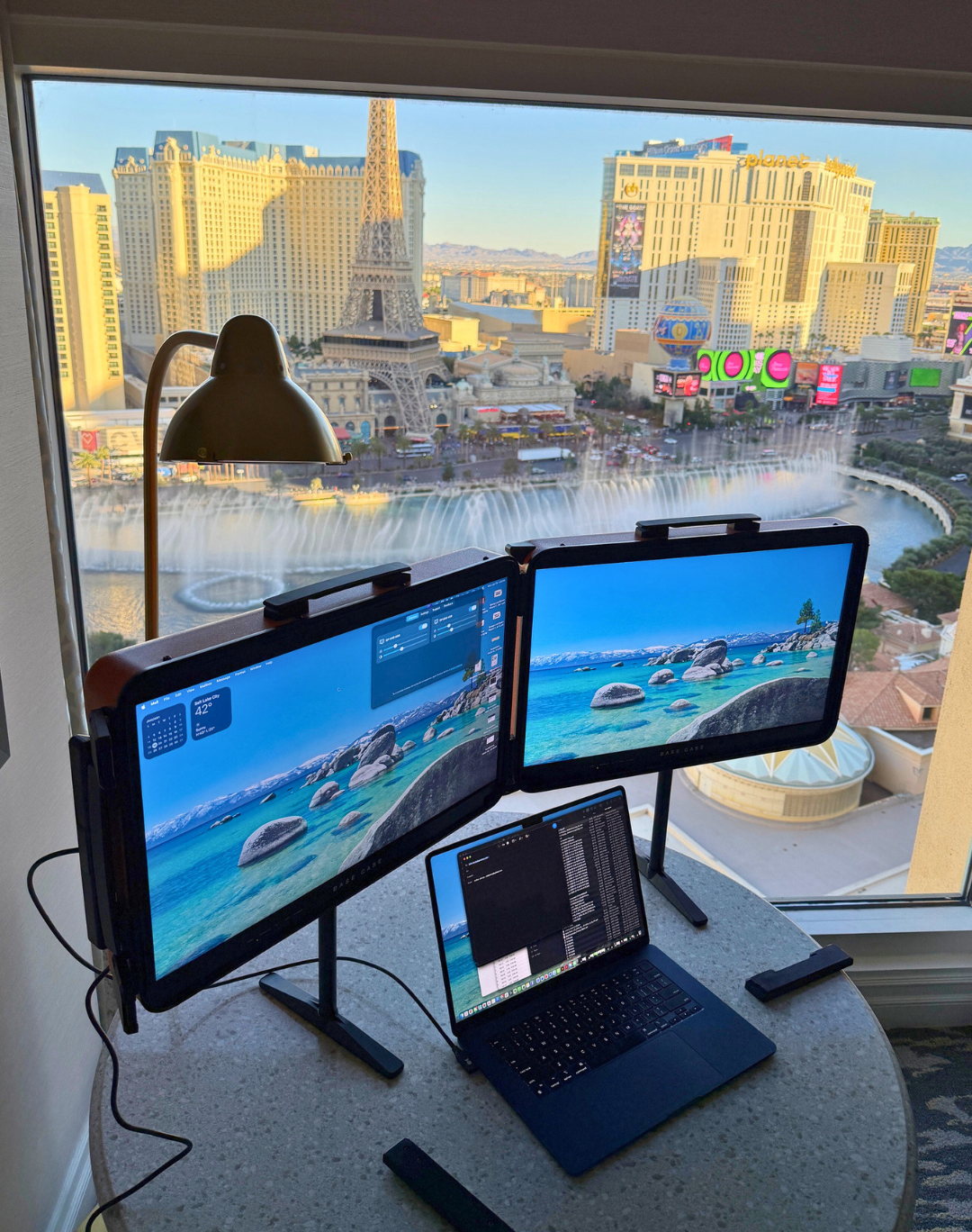 Yes, Base Case has two video ports, 1 for left and 1 for right screen. This is designed to plug in a single machine with two video cables, or separate machines for each case.