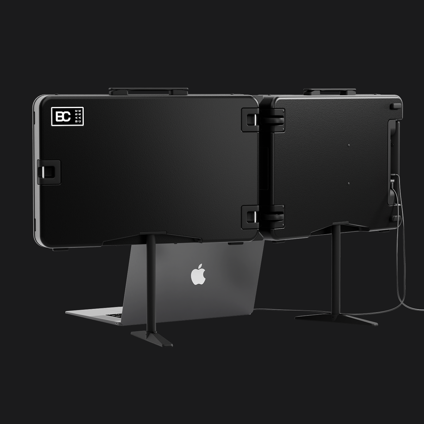 Base Case unfolds into a proper workstation with dual 24” UHD/4K screens. Designed for speed and clarity, it deploys in seconds and transforms any space into your personal command center. Whether you’re in the field, on set, or on the move, have the performance of a desktop with the portability of a carry-on.