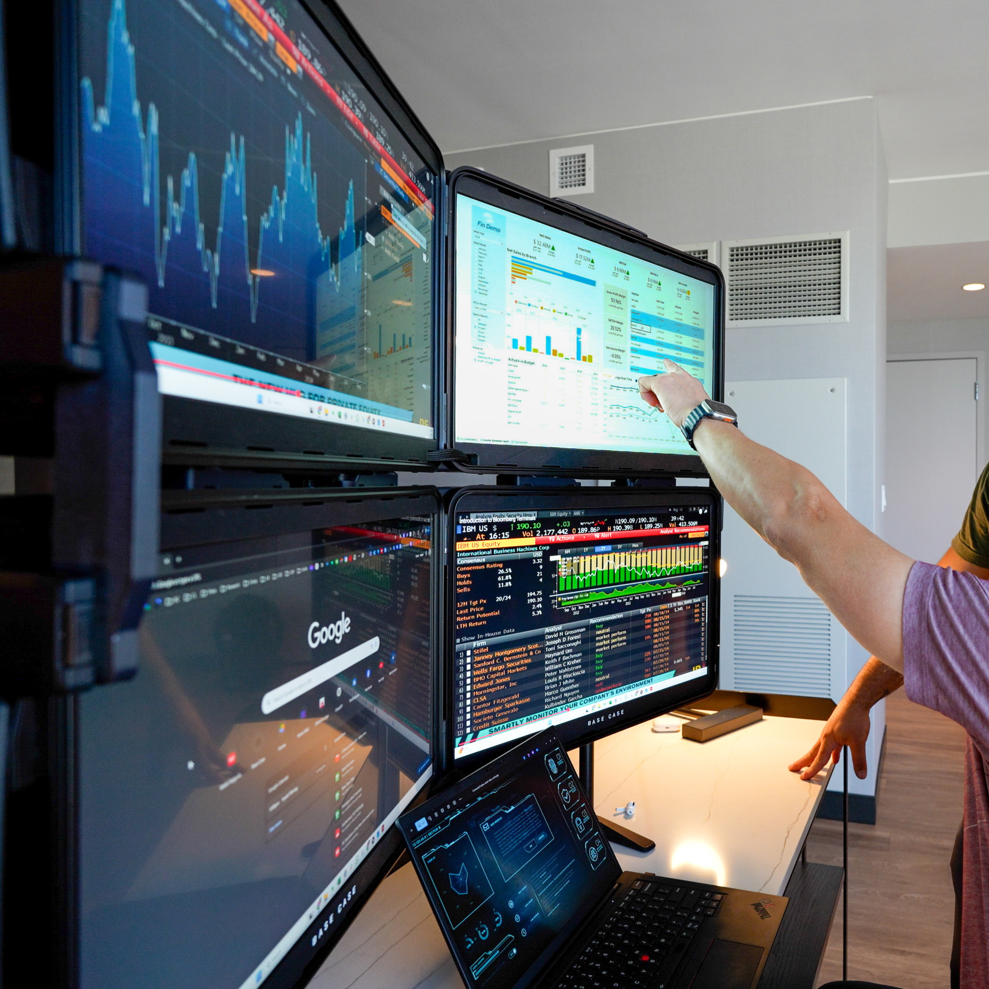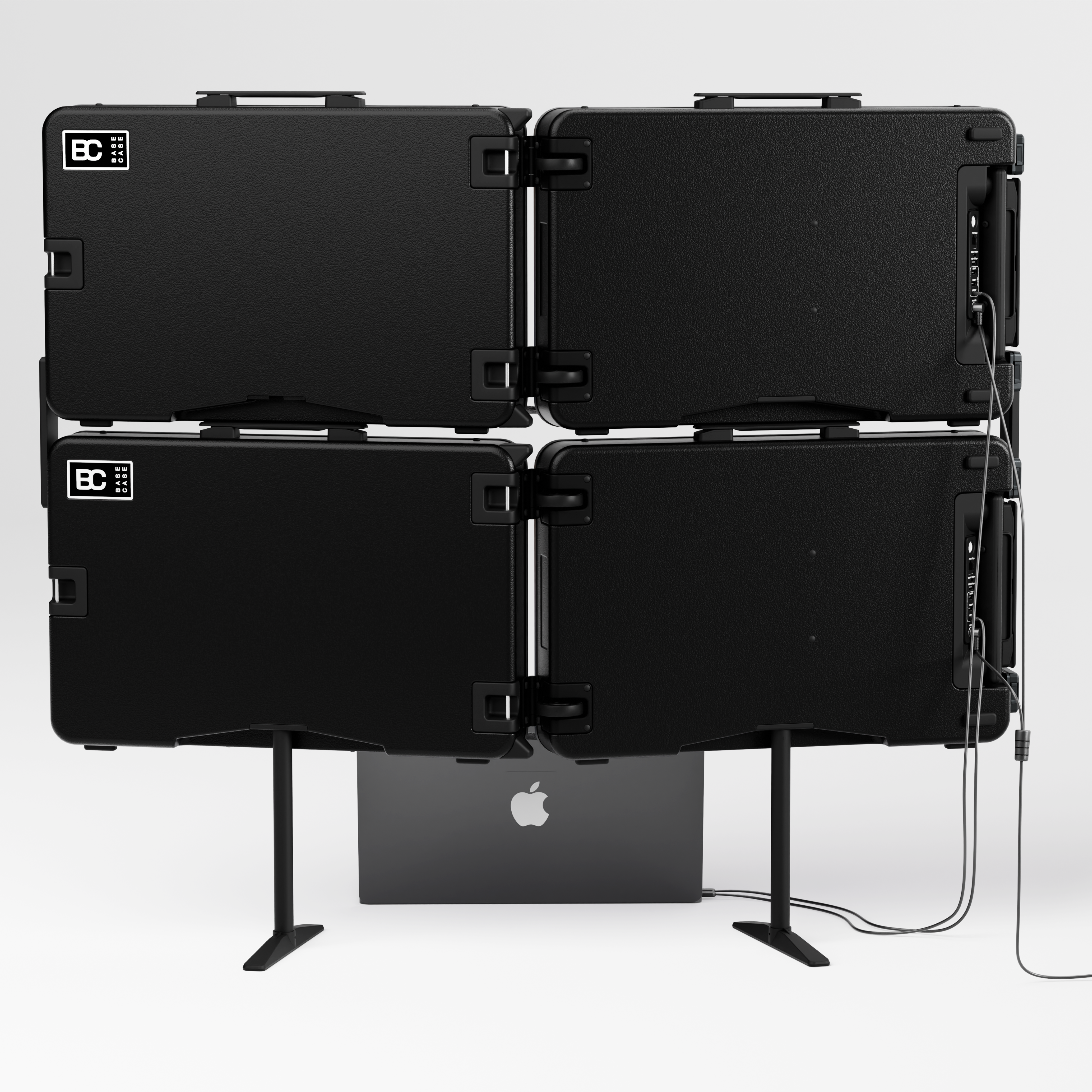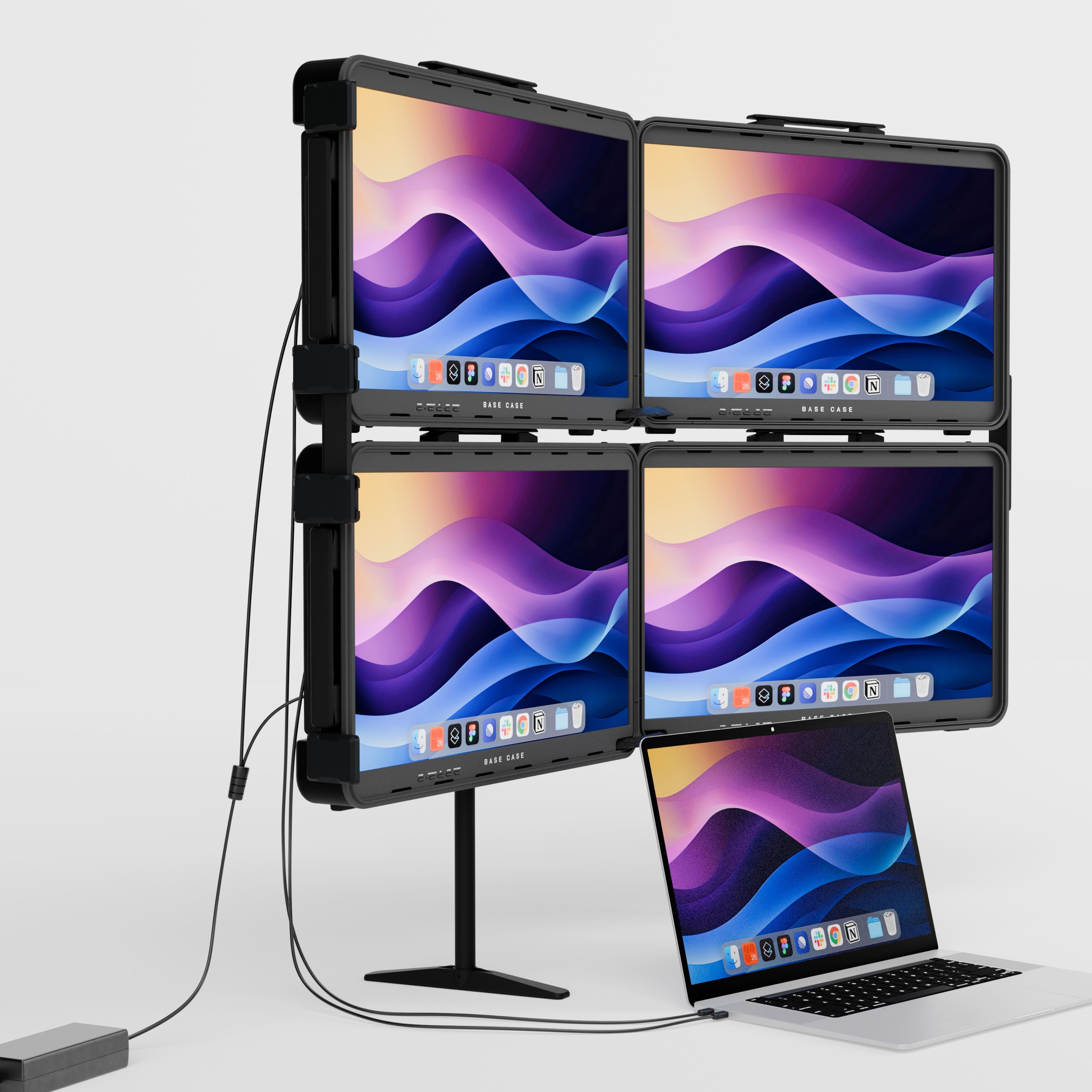 Meet QuadZilla™, the world’s first truly portable four-screen command center, built by stacking two Base Cases into one unstoppable workstation. Designed for mission-critical professionals, trading floors, military operations, mission planners, live event crews, and anyone who needs maximum screen real estate on the go. QuadZilla transforms any space into a mobile operations hub.